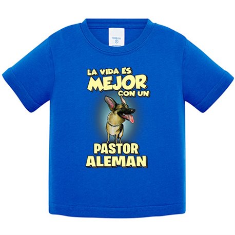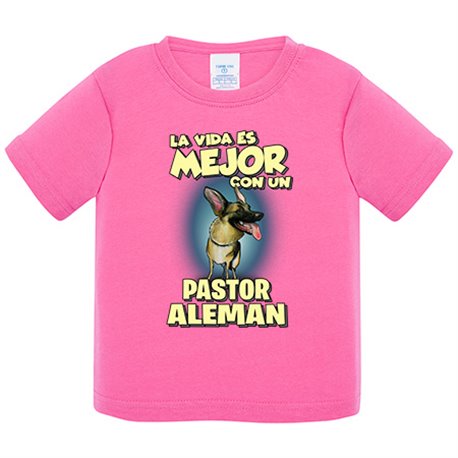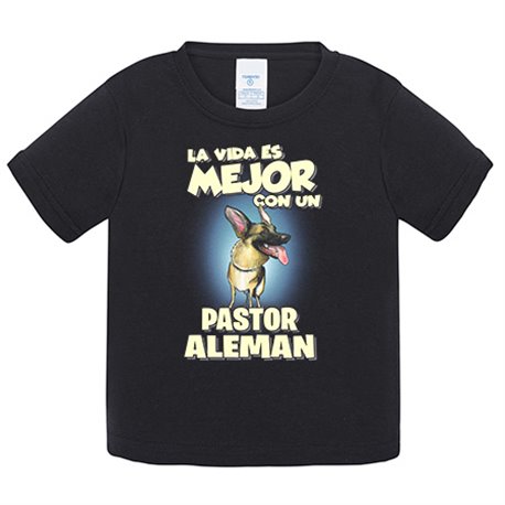 Camiseta bebé la vida es mejor con un perro de raza Pastor Alemán