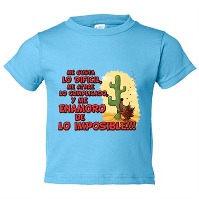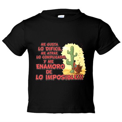 Camiseta bebé me gusta lo difícil me atrae lo complicado y me enamoro de lo imposible frase de amor San Valentín