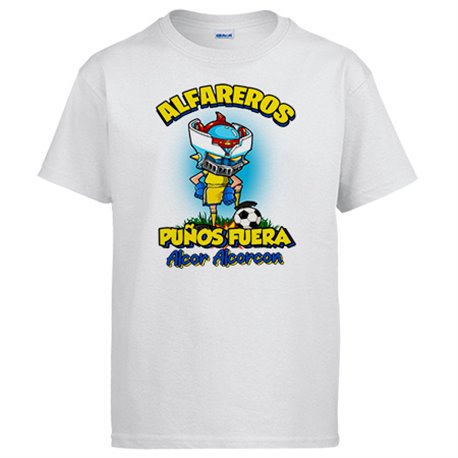 Camiseta frase alfareros puños fuera parodia robot de los 80 para nostálgicos futboleros de Alcorcón
