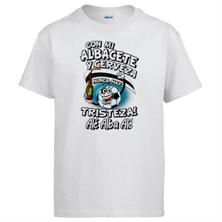Camiseta frase con mi Albacete y cerveza nunca hay tristeza para aficionado al fútbol