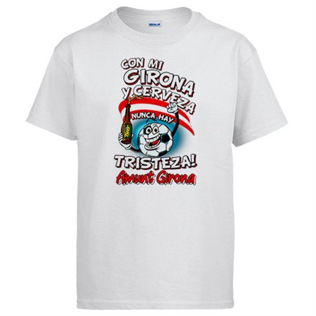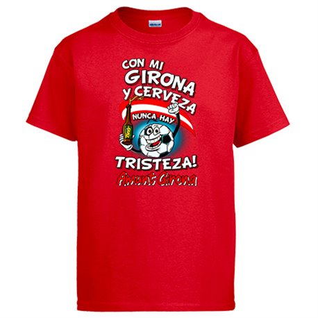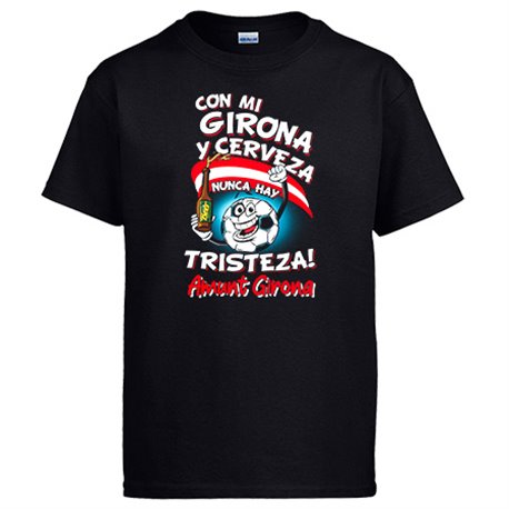 Camiseta frase con mi Girona y cerveza nunca hay tristeza para aficionado al fútbol