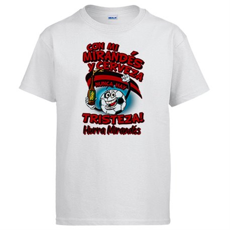 Camiseta frase con mi Mirandés y cerveza nunca hay tristeza para aficionado al fútbol