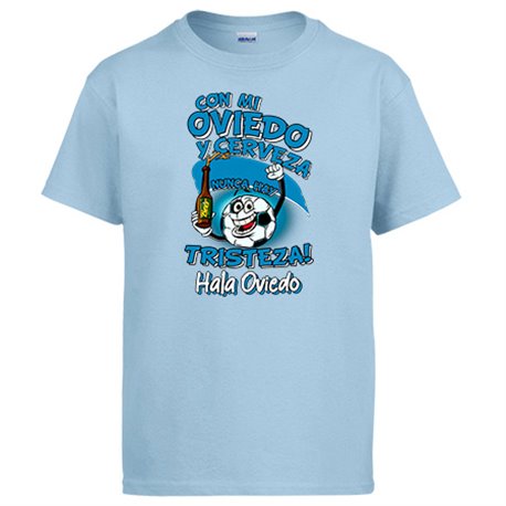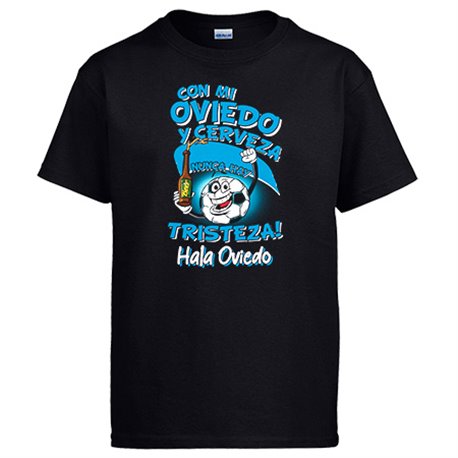 Camiseta frase con mi Oviedo y cerveza nunca hay tristeza para aficionado al fútbol