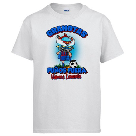 Camiseta frase granotas puños fuera parodia robot de los 80 para nostálgicos futboleros de Levante