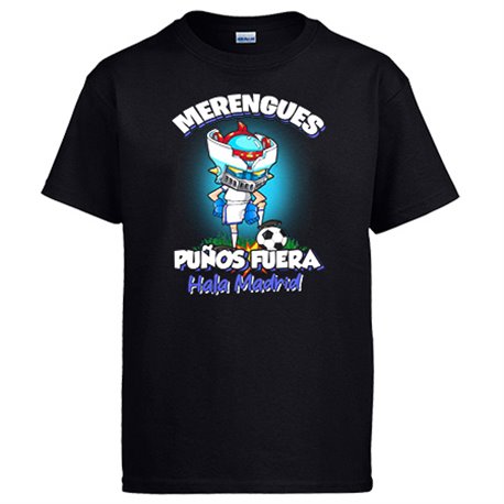 Camiseta frase merengues puños fuera parodia robot de los 80 para nostálgicos futboleros de Madrid
