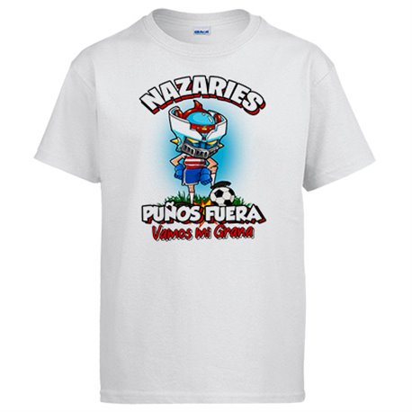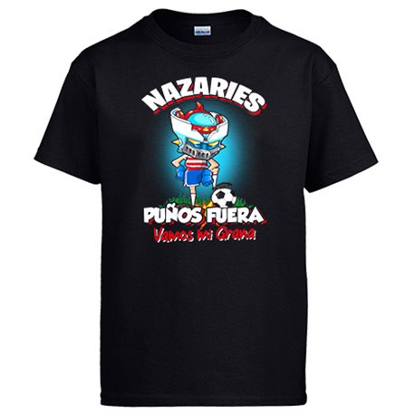 Camiseta frase nazaries puños fuera parodia robot de los 80 para nostálgicos futboleros de Granada