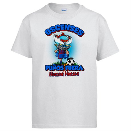 Camiseta frase oscenses puños fuera parodia robot de los 80 para nostálgicos futboleros de Huesca
