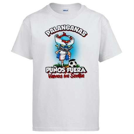 Camiseta frase palanganas puños fuera parodia robot de los 80 para nostálgicos futboleros de Sevilla