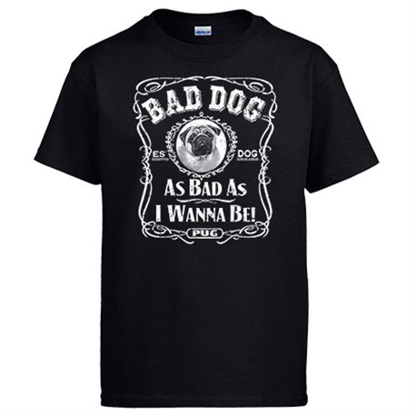 Camiseta frase perro raza Pug Bad dog as bad as I wanna be