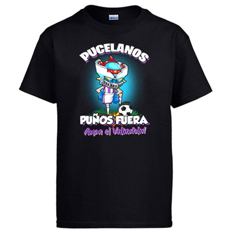 Camiseta frase pucelanos puños fuera parodia robot de los 80 para nostálgicos futboleros de Valladolid