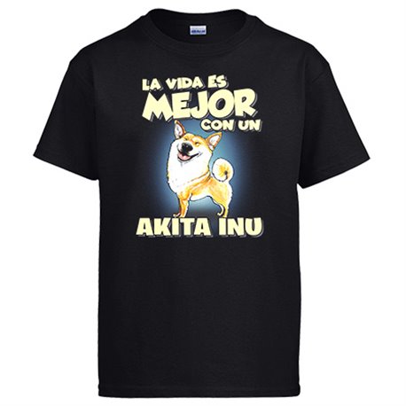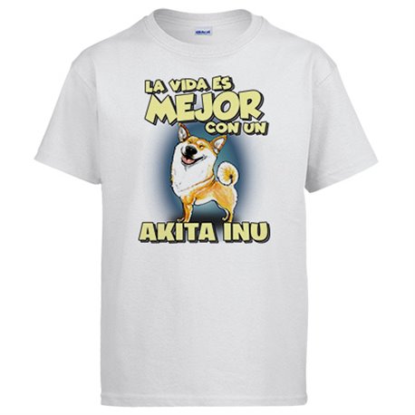 Camiseta la vida es mejor con un perro de raza Akita Inu blanco y marrón