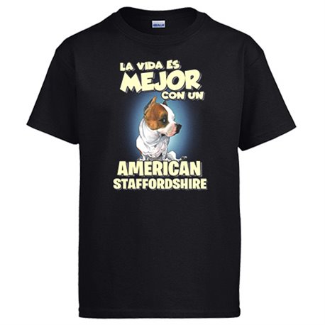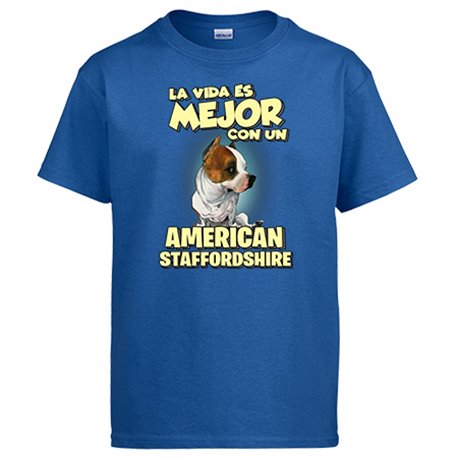 Camiseta la vida es mejor con un perro de raza American Staffordshire