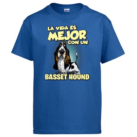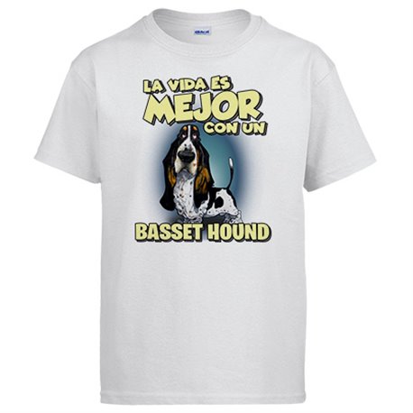 Camiseta la vida es mejor con un perro de raza Basset Hound blanco y negro
