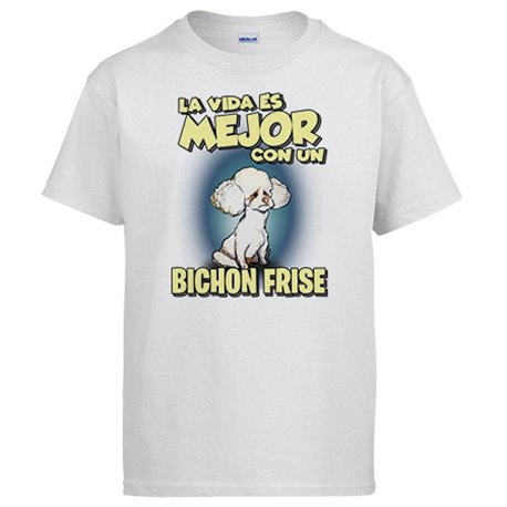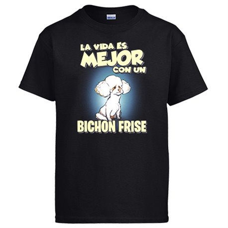 Camiseta la vida es mejor con un perro de raza Bichon Frise