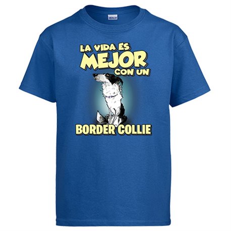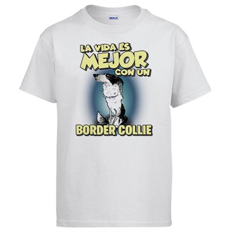 Camiseta la vida es mejor con un perro de raza Border Collie blanco y negro