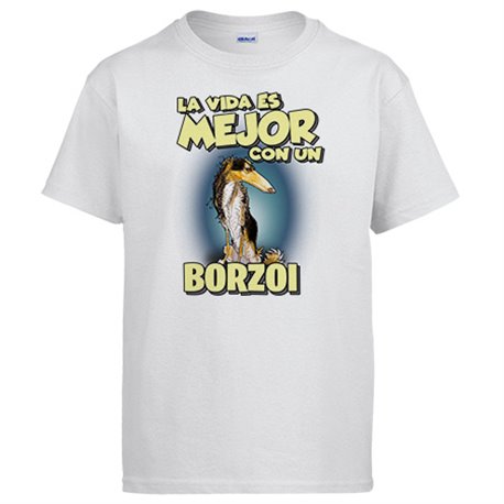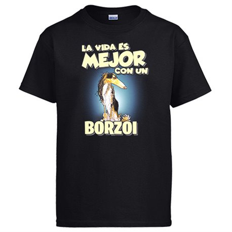 Camiseta la vida es mejor con un perro de raza Borzoi blanco y negro