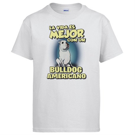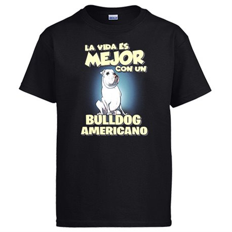 Camiseta la vida es mejor con un perro de raza Bulldog Americano