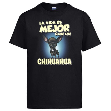 Camiseta la vida es mejor con un perro de raza Chihuahua negro