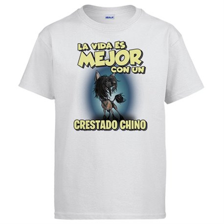 Camiseta la vida es mejor con un perro de raza Crestado Chino