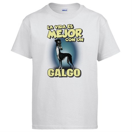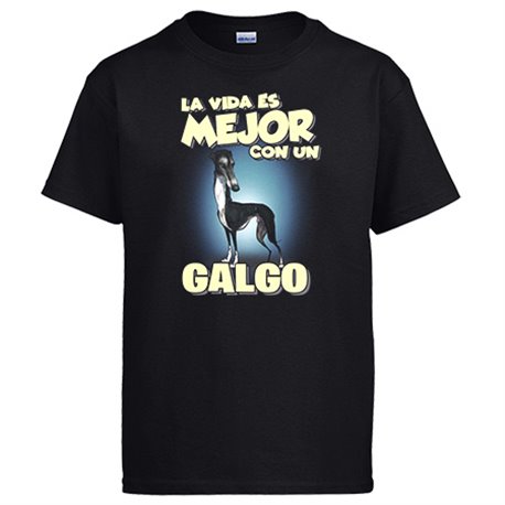 Camiseta la vida es mejor con un perro de raza Galgo negro