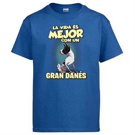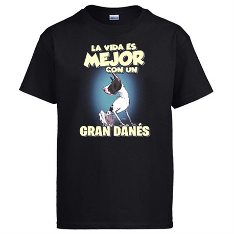 Camiseta la vida es mejor con un perro de raza Gran Danés arlequín