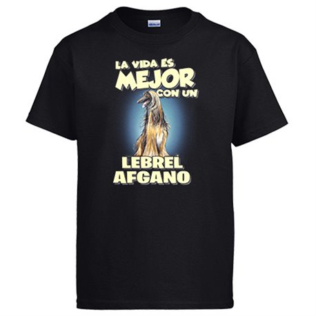 Camiseta la vida es mejor con un perro de raza Lebrel Afgano
