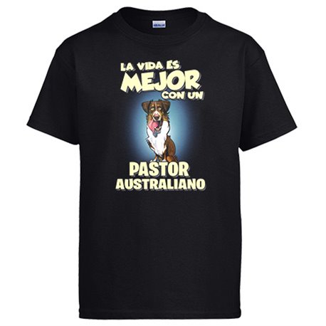 Camiseta la vida es mejor con un perro de raza Pastor Australiano