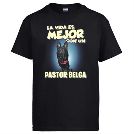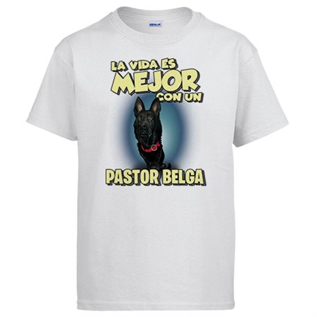 Camiseta la vida es mejor con un perro de raza Pastor Belga