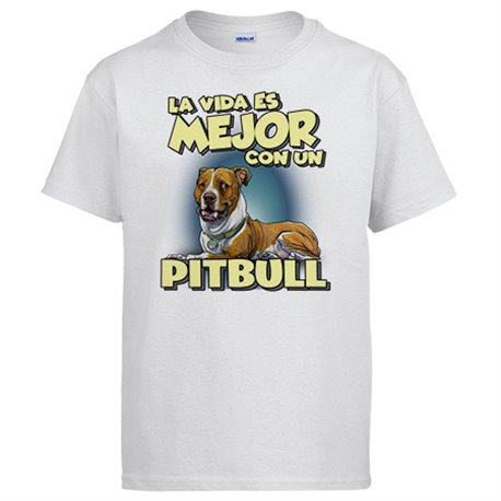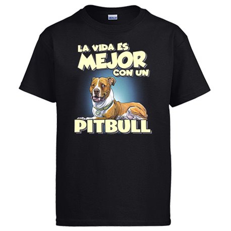 Camiseta la vida es mejor con un perro de raza Pitbull