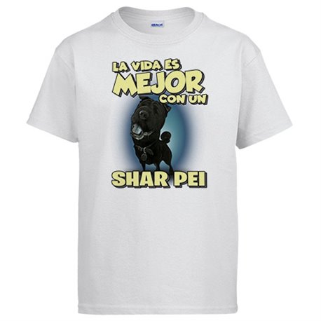 Camiseta la vida es mejor con un perro de raza Shar Pei negro