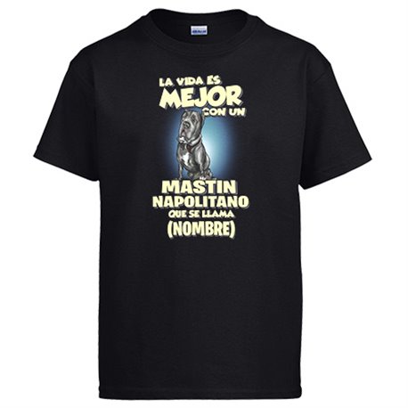 Camiseta la vida es mejor con un perro mascota Mastin Napolitano que se llama personalizable con nombre