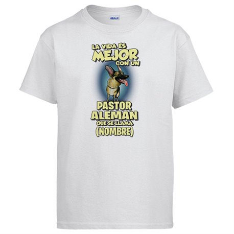 Camiseta la vida es mejor con un perro mascota Pastor Alemán que se llama personalizable con nombre