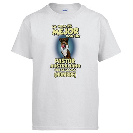 Camiseta la vida es mejor con un perro mascota Pastor Australiano que se llama personalizable con nombre