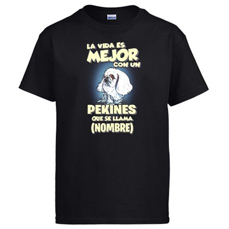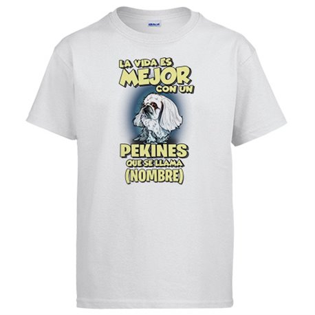 Camiseta la vida es mejor con un perro mascota Pekines blanco que se llama personalizable con nombre