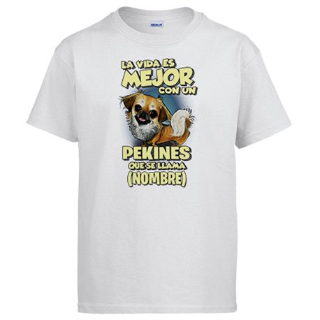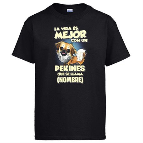 Camiseta la vida es mejor con un perro mascota Pekines que se llama personalizable con nombre
