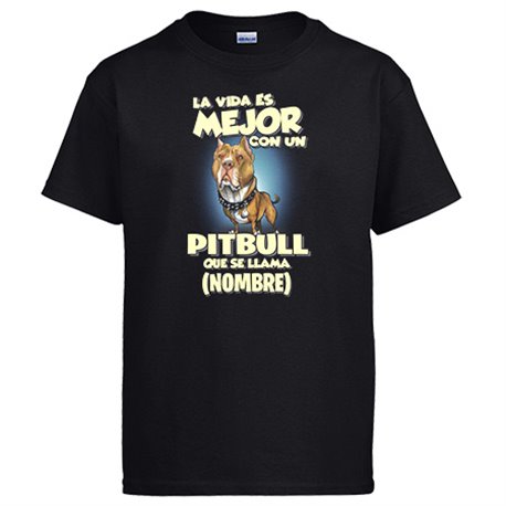 Camiseta la vida es mejor con un perro mascota Pitbull canela que se llama personalizable con nombre