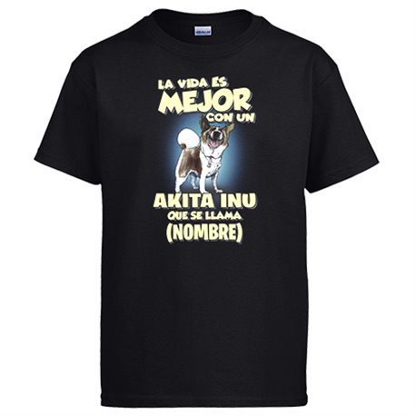 Camiseta la vida es mejor con un perro raza Akita Inu atigrado que se llama personalizable con nombre