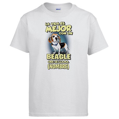 Camiseta la vida es mejor con un perro raza Beagle que se llama personalizable con nombre