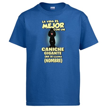 Camiseta la vida es mejor con un perro raza Caniche negro que se llama personalizable con nombre