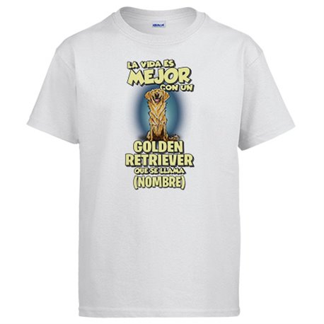 Camiseta la vida es mejor con un perro raza Golden Retriever que se llama personalizable con nombre