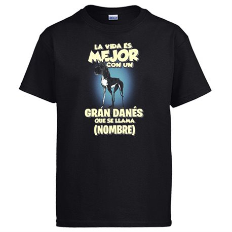 Camiseta la vida es mejor con un perro raza Gran Danés negro que se llama personalizable con nombre