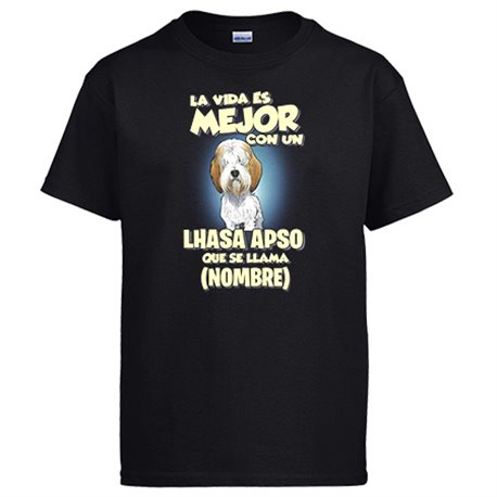 Camiseta la vida es mejor con un perro raza Lhasa Apso que se llama personalizable con nombre