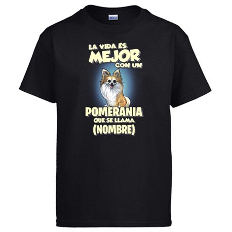 Camiseta la vida es mejor con un perro raza Pomerania que se llama personalizable con nombre