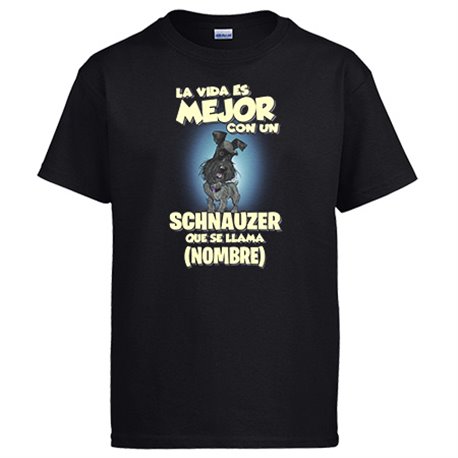 Camiseta la vida es mejor con un perro raza Schnauzer negro que se llama personalizable con nombre