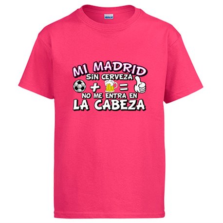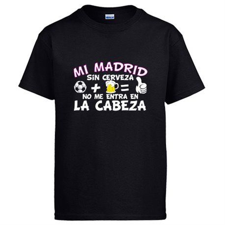 Camiseta Mi Madrid sin Cerveza no me entra en la cabeza frase para futboleros