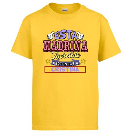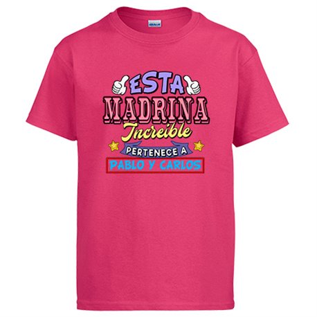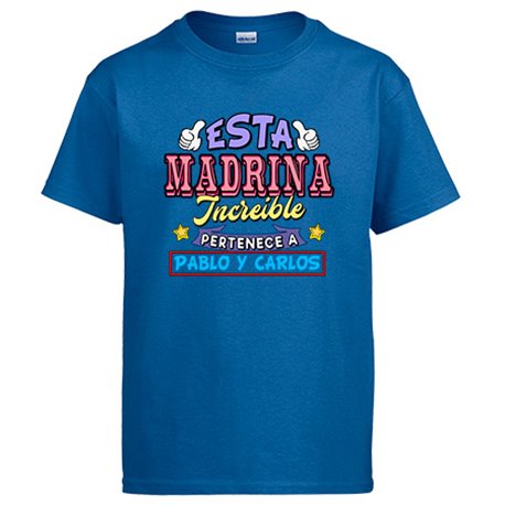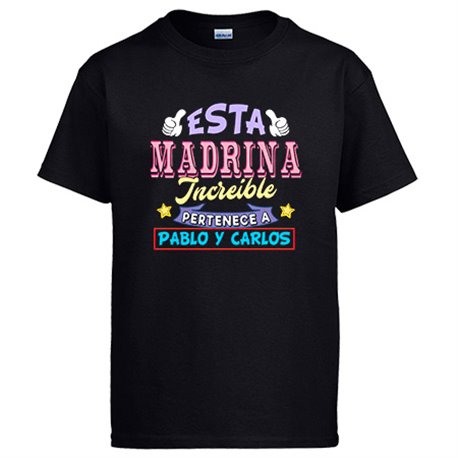 Camiseta personalizable con nombre ejemplo Esta madrina increíble pertenece a Pablo y Carlos