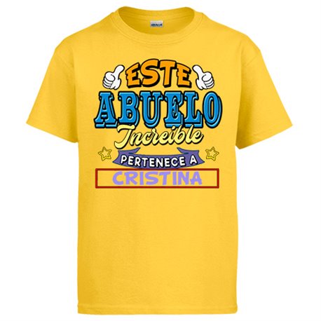 Camiseta personalizable con nombre ejemplo Este abuelo increíble pertenece a Pablo y Carlos