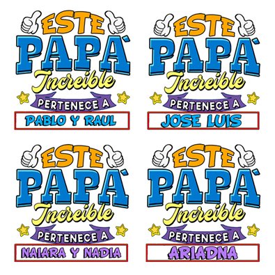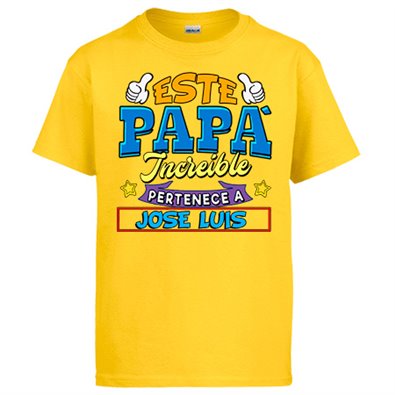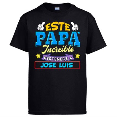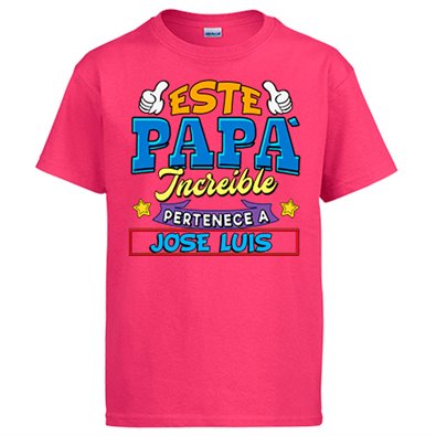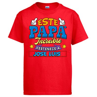 Camiseta personalizable con nombre ejemplo Este papá increíble pertenece a Pablo y Raúl