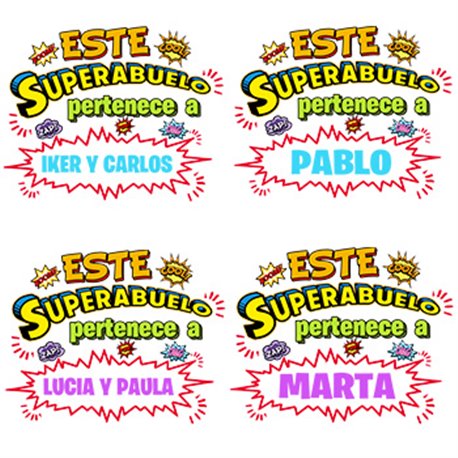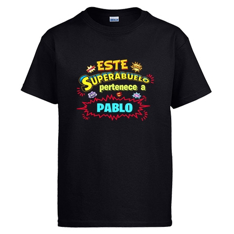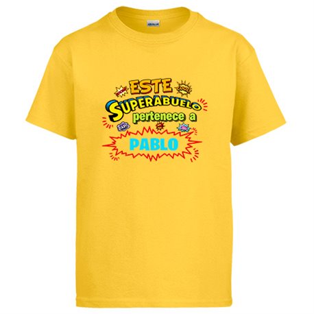 Camiseta personalizable con nombre ejemplo Este Super abuelo pertenece a Juan y Susana