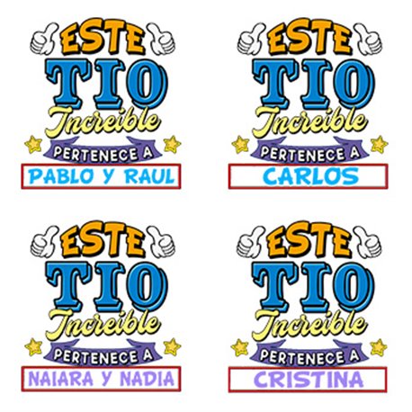 Camiseta personalizable con nombre ejemplo Este Tío increíble pertenece a Pablo y Carlos